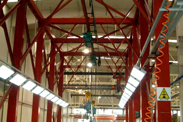懸掛輸送機(jī)廣泛應(yīng)用于連續(xù)地在廠內(nèi)輸送各種成件物品和裝在容器或包內(nèi)的散裝物料,也可在各個工業(yè)部門的流水線中用來在各工序間輸送工件,完成各種工藝過程實(shí)現(xiàn)輸送和工藝作業(yè)的綜合機(jī)械化。